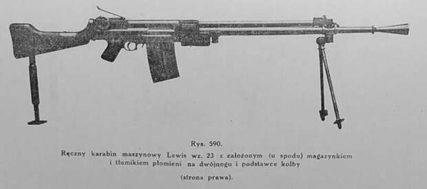 Вот вам ручной пулемет (или автоматическая винтовка) конструкции американца Льюиса, модели 1923 года. Штука хоть и мелкосерийная, но для своего времени хорошо известная и испытывавшаяся в самых разных странах.