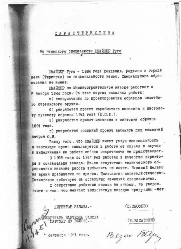 Так что Шмайсер (вместе с Барнитце и другими своими коллегами) еще какое-то время продолжал без особого толку есть советский хлеб, а потом был с миром отослан на историческую родину.
