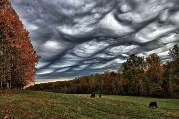 Асперитас — это зловещее скопление волнообразных облаков. Несмотря на свой грозный вид, чаще всего асперитас рассеивается без грозы.