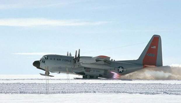 Несмотря на то, что Lockheed LC-130 – это самолет вооруженных сил США, его можно смело считать самым настоящим снегоходом. Достаточно сказать, что помимо выдвижных лыж для посадки в Арктике или Антарктике, у самолета есть миниатюрные ракетные двигатели, которые должны помогать ему выбираться из глубокого снега при взлете.