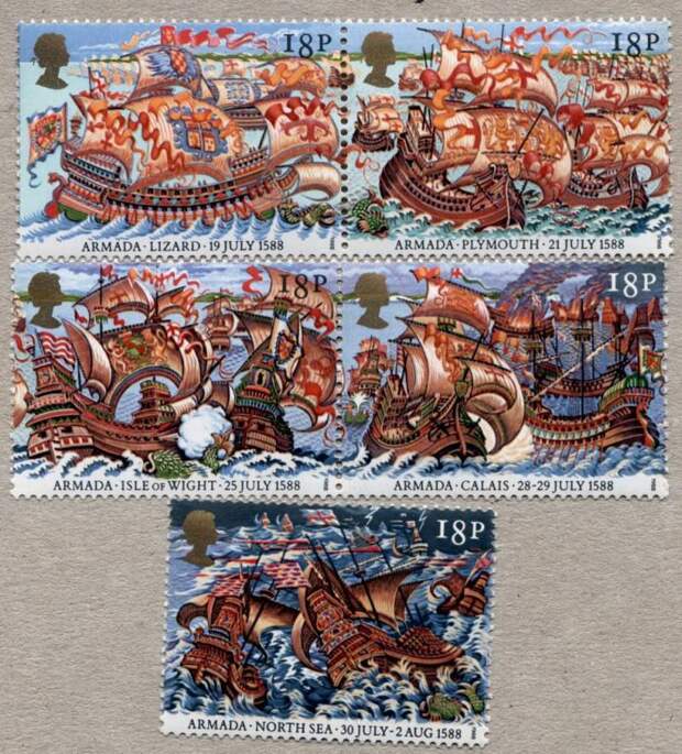 Серия английских марок, посвященная судьбе Непобедимой армады