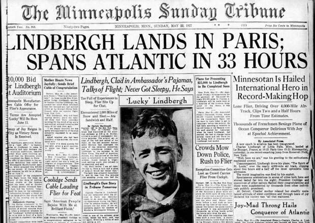 Линдберг взлетел 20 мая 1927 года. Через 33 с половиной часа он сел в Париже. Дело это было нелегкое. За исключением борьбы с постоянно подкрадывающимся сном, Линдберг воевал с туманами, ветрами, обледенением и необходимостью самостоятельно прокладывать курс. Успешное приземление в нужной точке при том, что летел он один – заслуга его немалого опыта, приправленного какой-то толикой везения.