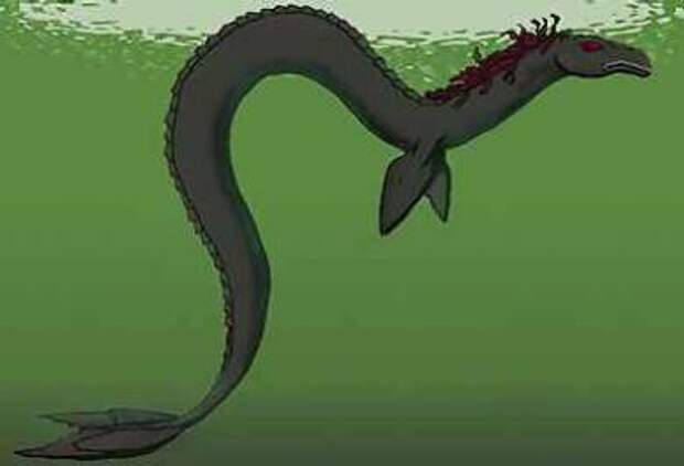 Оно плыло на расстоянии 90 метров, его изогнутое тело напоминало змеиное, оно как бы образовывало петлю, а голова, высовывавшаяся из воды, была похожа на голову питона, только значительно больше.