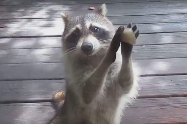 “Енот выяснил это после того, как совершил набег на миску корма для кошек, а там было пусто. И он теперь просто стучит в дверь… В ТЕЧЕНИЕ МНОГИХ ЧАСОВ, пока я снова не наполню миску!