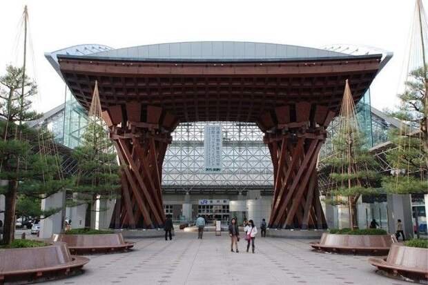 Этот вокзал в японском городе Канадзава является самым старым вокзалом страны — впервые он принял пассажиров еще в 1851 году. Вокзал в том виде, в котором мы можем наблюдать его сегодня, был открыт в 2005 году. Его архитектурный облик вызвал неоднозначную реакцию у местных жителей, которые считали, что подобное смешение традиционной японской архитектуры и футуристичного дизайна выглядит некрасиво. Но туристы думали иначе, поэтому вокзал Канадзава за очень короткий срок стал весьма популярным среди иностранцев. Как и в любом японском здании, здесь пришлось решать проблему экономии пространства, поэтому платформы, которых на вокзале семь, расположены на разных уровнях — одна под другой. Главные ворота вокзала сделаны из дерева, обработанного вручную, а под стеклянной крышей помимо залов ожидания, касс, камер хранения и железнодорожных платформ есть небольшой сад с традиционными для этой местности растениями и множеством фонтанов.