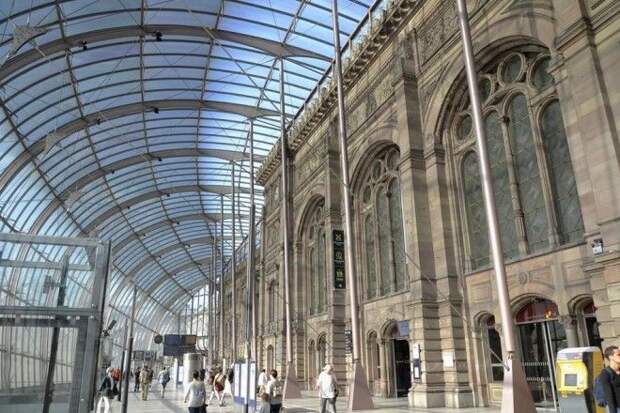 Нынешний вокзал Ля Гар во французском Страсбурге снаружи — не что иное, как огромный стеклянный купол, но внутри все гораздо интереснее. Дело в том, что таким образом было решено сохранить старое здание вокзала, построенное еще в 1883 году. Первый страсбургский вокзал был построен в 1854 году, затем был разрушен, восстановлен и перестроен, полностью заменив первоначальную железнодорожную станцию. В XIX веке вокзал был не только пассажирским, но и являлся товаро-сортировочной станцией. В 2006 году было принято решение наряду с присоединением станции к сетям скоростных поездов TGV реконструировать старинное здание вокзала. Почти два года здесь ежедневно трудились 300 рабочих, возводя над Ля Гар огромный стеклянный купол весом 900 тонн и стоимостью 150 миллионов евро. Вокзал также оборудован самой большой во Франции компьютеризированной системой, ради подключения которой пришлось на 30 часов остановить транспортное сообщение на станции. Реконструкции также подверглась и привокзальная площадь: теперь здесь среди прочего есть велостоянка на 850 мест. Все эти нововведения не прошли даром — на сегодняшний день вокзал ежедневно обслуживает 60 000 пассажиров.