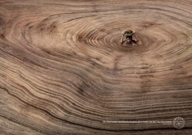 Реклама, которая напоминает, что от вырубки лесов пострадают реальные люди.