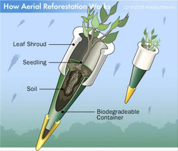 Компания Lockheed Martin Aerospace, предлагет использовать бомбардировщики C-130, для засаживания деревьями отдаленных труднодоступных областей по принципу ковровых бомбардировок.
