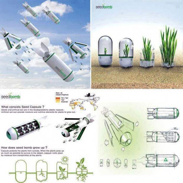 Такие зеленые бомбы могут быть адаптированы под любой район, и заполнены семенами пригодных растений даже для пустынных районов. Существует пилотный проект, воздушной лесопосадки на Синайской пустыне в Египте. Также изучаются возможности высадки деревьев в Северной Африке, в тундре Канады, Австралии и США.