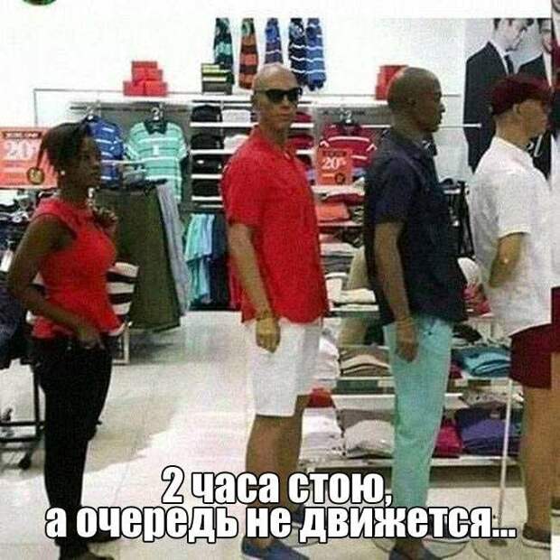 Если вы думаете, что у вас неудачный день, подумайте об этой женщине, которая стоит в очереди среди манекенов.