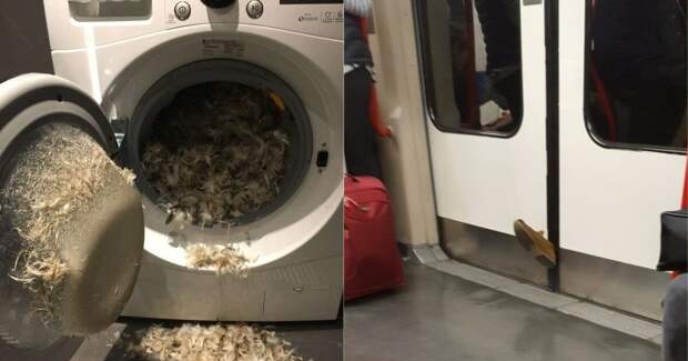На этих двух фото изображена обычная жизнь: казусы в метро, капризы стиральной машины.