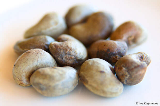 Узнаете? Да это он, это орех кэшью. Если вы когда-нибудь попадете в страны где его выращивают, никогда не повторяйте моей ошибки. Это смертельно опасно!
