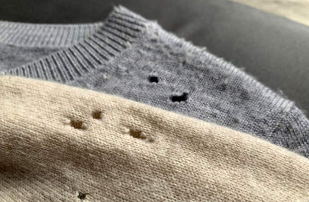 Личинки платяной моли питаются кератином — белком, из которого состоят изделия из шерсти и меха, но одежда из синтетики тоже находится под угрозой. Есть искусственные волокна личинки не станут, но обгрызут. Правда, шерсти в ткани все равно должно быть не менее 30%.