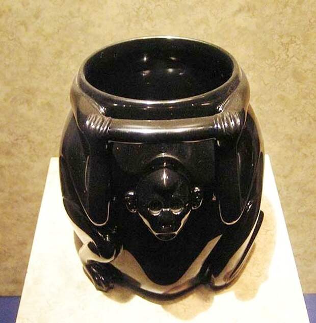 И дело вовсе не в замечательно отполированных мельчайших деталях фигуры обезьяны, а в безукоризненном исполнении самой чаши. Надо было умудриться не расколоть весьма хрупкий обсидиан. И главное - каким-то образом изготовить сосуд без малейших отклонений от правильной круглой формы.
