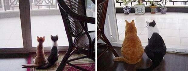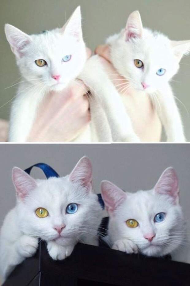 Кошки-близняшки с разными глазами.