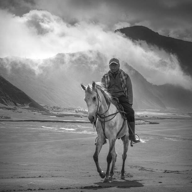 Фотограф Дэниел Тжонгари (Daniel Tjongari) проживает в Сурабае, втором по величине городе Индонезии, на острове Ява. Недавно он ездил в расположенный неподалеку (в двухстах километрах) Национальный парк Bromo Tengger Semeru, где сделал серию атмосферных черно-белых снимков. Вот что он рассказывает: