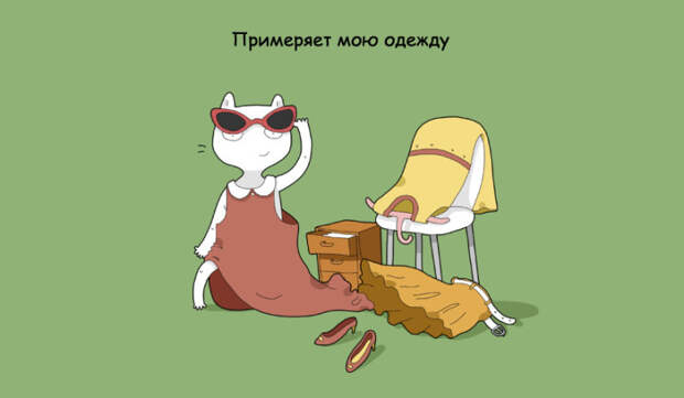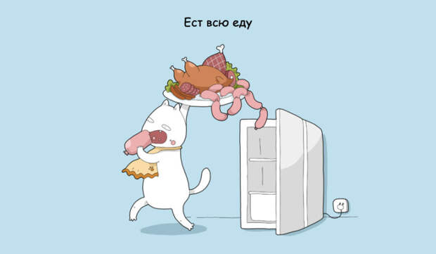 Поскольку кошка всегда стремится быть самостоятельной, кажется, что она ведёт двойную жизнь: наслаждается вечеринками, приглашает к себе друзей, съедает всю еду из холодильника — в общем, веселится как может в отсутствие хозяев.
