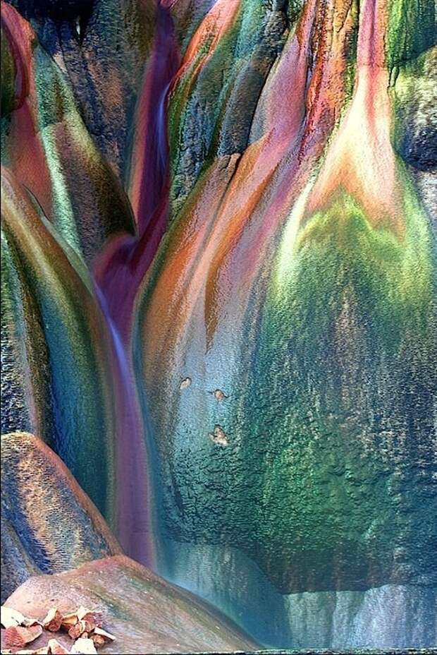 Интересно, что это творение дело рук человеческих, а дорисовала картину уже сама природа. Здесь век назад проходили бурильные работы (то ли нефть искали, то ли воду), но добурились до источника с кипящей водой. Отверстие забросили, но вода уже нашла путь к выходу и теперь на этом месте кипящий фонтан, который постоянно бьет в небо огромной струей и разноцветные скалы, которые стали такими из-за вымываемых водой минералов.