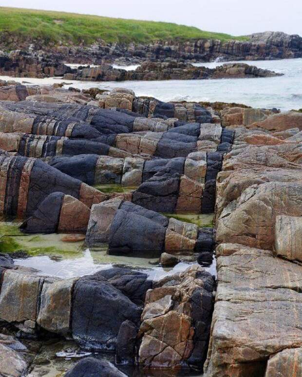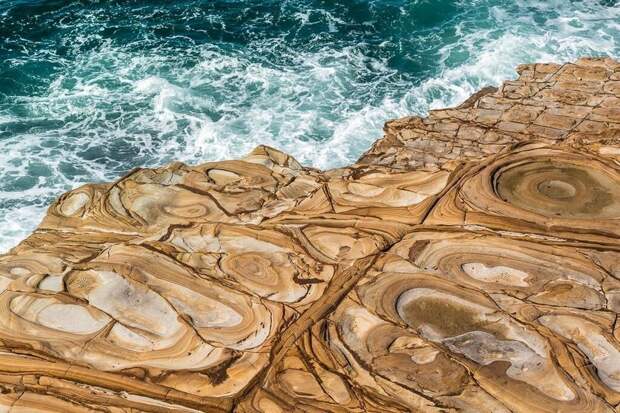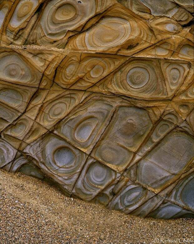 19. Кольца Лизеганга – концентрические кольца или ритмически перемежающиеся полосы, возникающие в результате периодического осаждения каких-либо соединений. Widemouth Bay, Корнуолл, Англия.