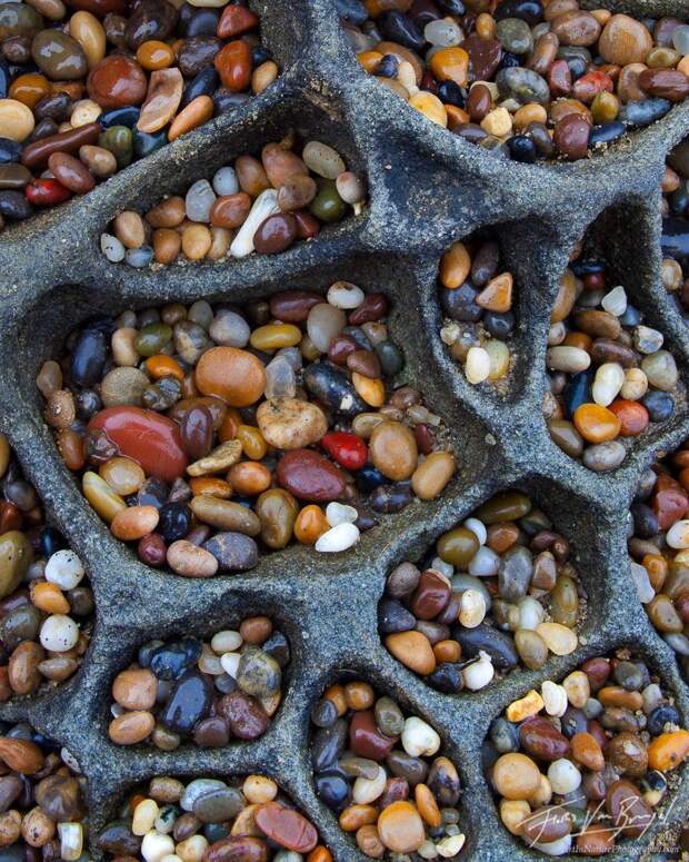 18. Камушки в отверстиях тафони, пляж Бин Холлоу Стейт, Калифорния, США.