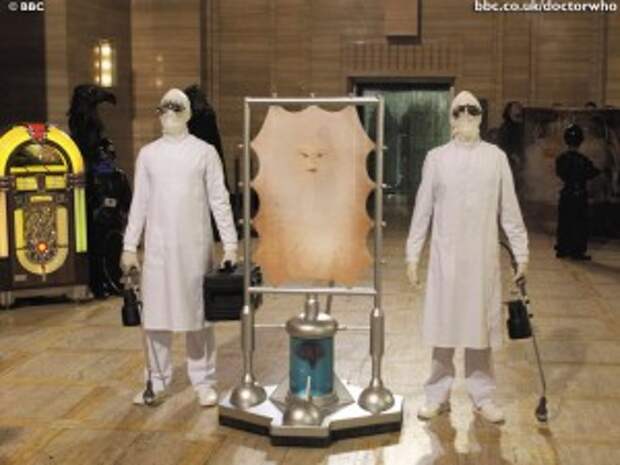 Человек будущего (в центре) из научно-фантастического сериала «Доктор Кто»