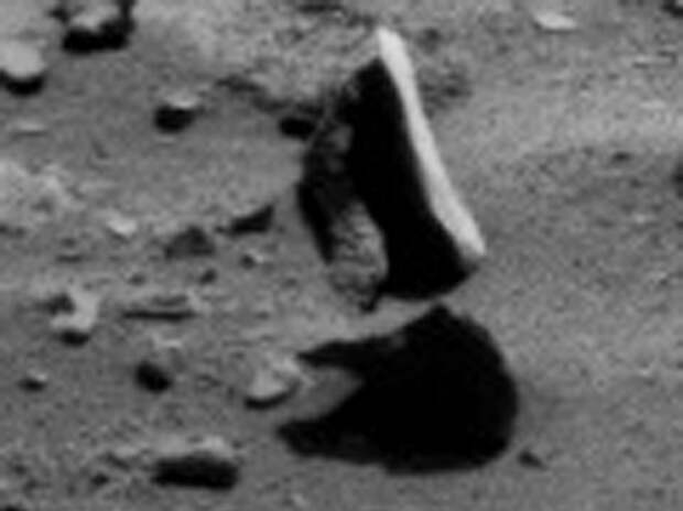 На снимке, переданном с Марса роботом "Любопытство" ( NASA Mars rover Curiosity) интернет-исследователи разглядели левитирующий объект. Чудеса, да и только: видно, что камень парит в нескольких сантиметрах от поверхности, отбрасывая на нее тень.