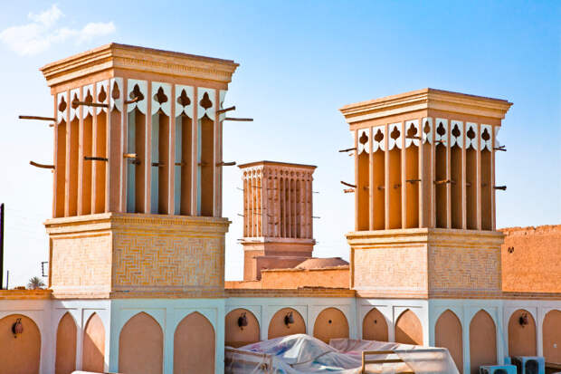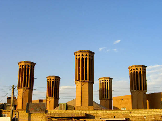 Эти устройства — одновременно и вентиляция и что-то вроде радиаторов для целого здания. Они удивительно эффективны: в пустынных районах Ирана их строят до сих пор — кондиционеры здесь просто не справляются.