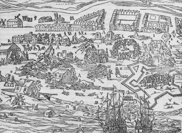 Один за другим три сильнейших подземных толчка разрушили город. Под слоем твердого песчаника оказались грунтовые воды, они вышли на поверхность и улицы превратились зыбучее болото, которое мгновенно поглотило сотни домов вместе с их обитателями. Смерть этих людей была жуткой: ректор собора святого Павла Эммануэль Хит вспоминал, что, когда песок снова затвердел, из него «во многих местах торчали руки, ноги или головы людей».