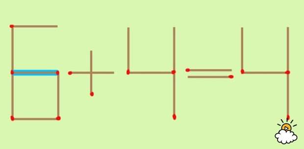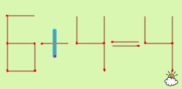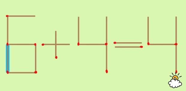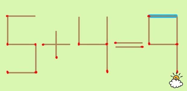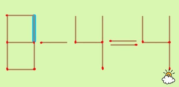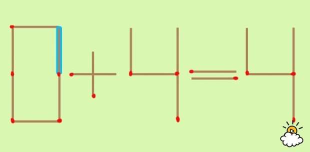 Голубая спичка - это как раз та, которую нужно передвинуть. Уже догадались, куда нужно ее переместить? Нажмите на картинку, чтобы узнать правильный ответ!
