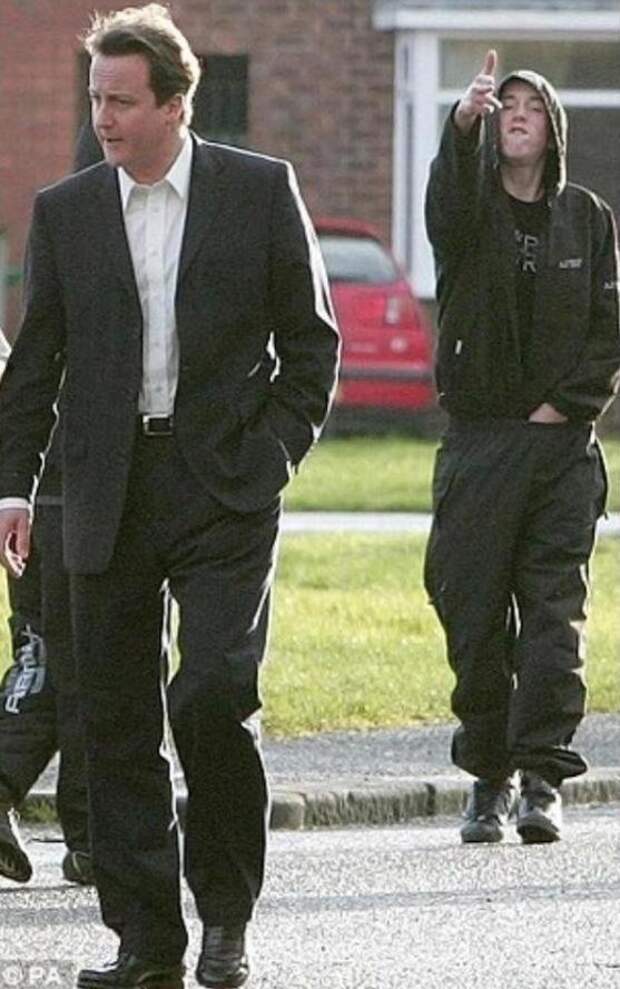 Хотя в речи Дэвида Кэмерона нигде не говорилось об объятиях, эта часть кампании будущего премьер-министра была названа «Обними „худи“». В 2007-м году Кэмерон посетил одно из самых неблагополучных поместий Манчестера.