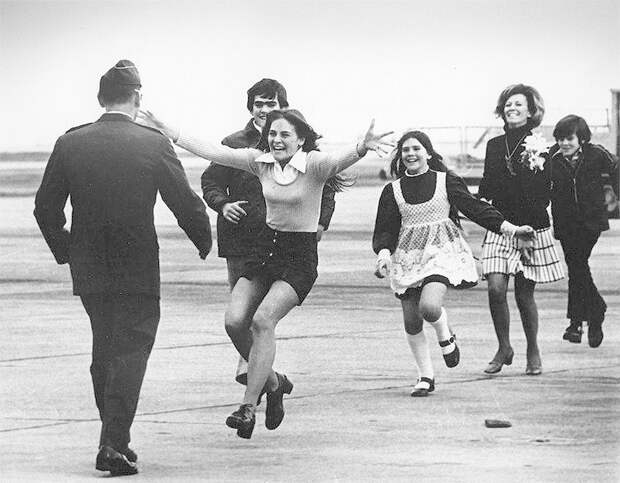 В кадре подполковник США Роберт Л. Стирм встречается со своей семьей после пятилетнего плена в Северном Вьетнаме.