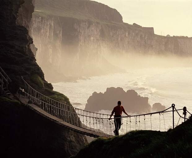 Веревочный подвесной мост Каррик-а-Ред имеет длину 20 метров и на 30 метров возвышается над скалами около графства Баллинтой в Северной Ирландии. Фотограф: Christopher Hill.