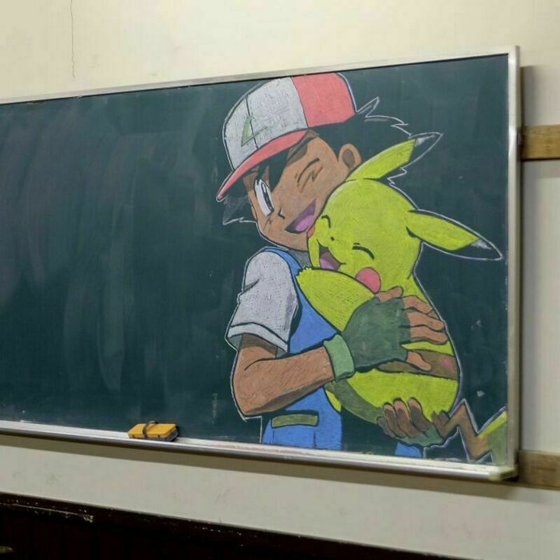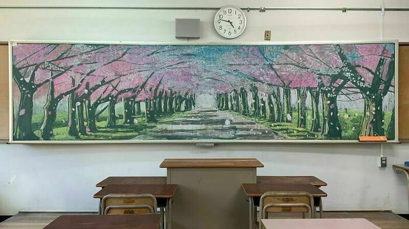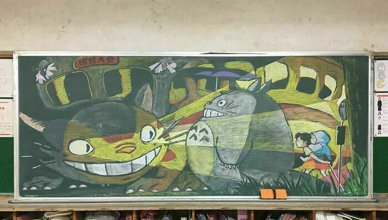 И нет, это не подробный план урока, сложные графики или решение уравнений: это потрясающие картины, нарисованные мелом. На доске в кабинете Хиротаки можно увидеть все: от героев аниме до «Звездной ночи» Ван Гога. Предлагаем вам посмотреть на его удивительные работы, которыми Хиротака пытается увлечь школьников.Хамасаки создает настоящие шедевры в своем кабинете, рисуя обычным мелом на доске
