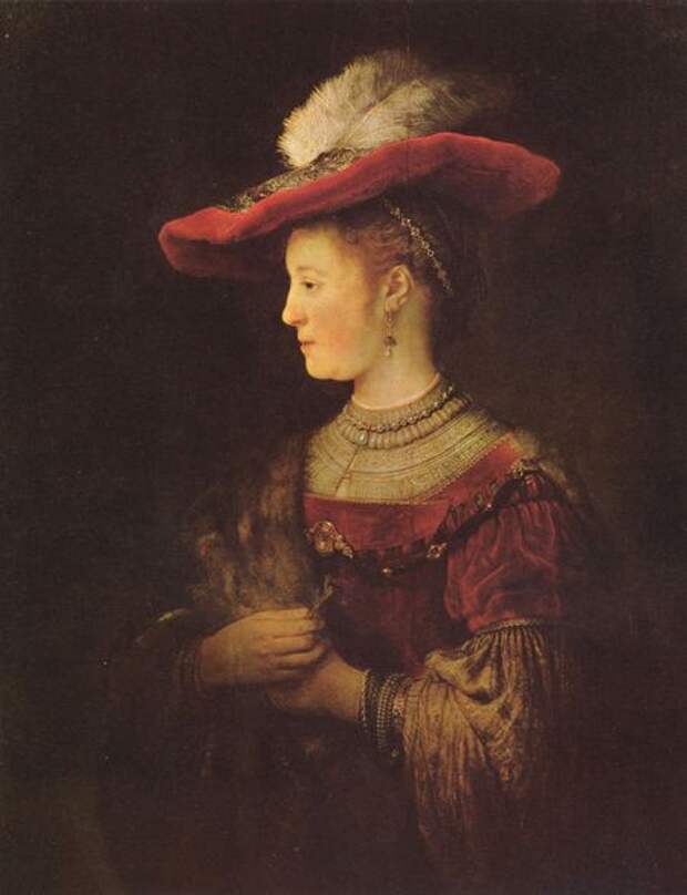 Портрет Саскии кисти Рембрандта написан в 1634 году. Супруге художника тут 22 года. Через 8 лет она умрёт. |
