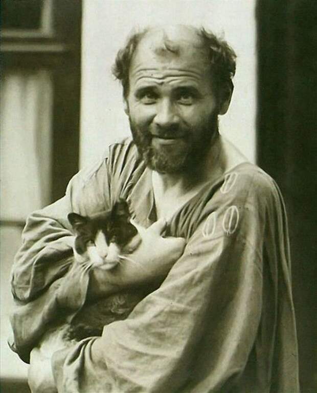 7. Известный австрийский художник Густав Климт со своим котом по кличке Катце. (© itcolossal)