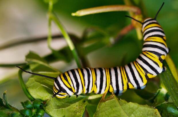 Бабочка Монарх - это одна из самых красивых представительниц фауны. В состоянии гусеницы она также смотрится не менее впечатляюще.