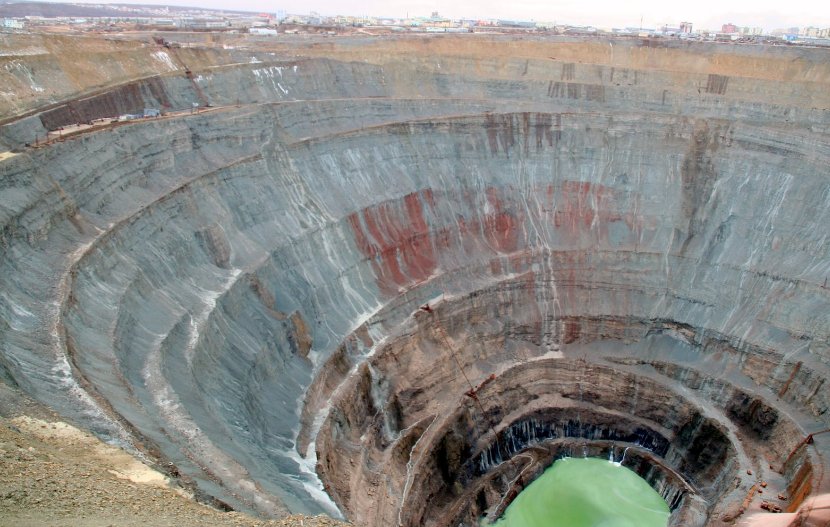 Здесь находится крупнейший на территории России рудник «Мирный». Месторождение было открыто в 1955 году. Сейчас карьерная разработка алмазов прекращена, добыча ведется подземными выработками. Глубина карьера – 530 метров, диаметр – 1100 метров. Всего в Якутии найдено около 1000 кимберлитовых трубок.