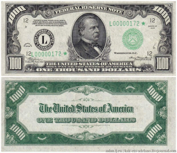 27. 22-й и 24-й президент США Гровер Кливленд (англ. Grover Cleveland) — на банкноте в 1000 долларов 1934 года.