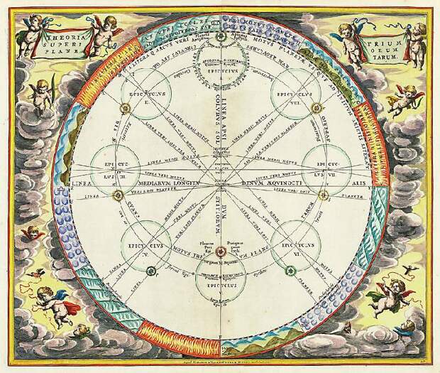 Рисунок показывает, как в Средние века представляли эллиптическую орбиту Луны – в виде круговой и наложенных эпициклов.