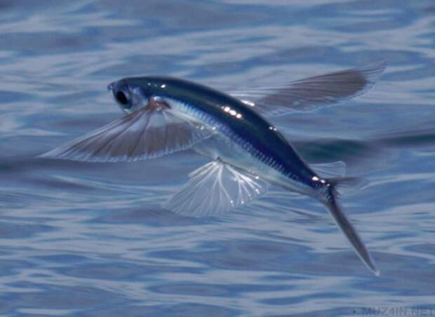 Есть 40 видов морских рыб, которые действительно могут летать, выскальзывая из воды и планируя. Подобно некоторым из вышеупомянутых животных, летучие рыбы используют этот метод, чтобы убежать от хищников, но они именно скользят, а не летят, как птица или летучая мышь, несмотря на то, что у них крыловидные плавники.