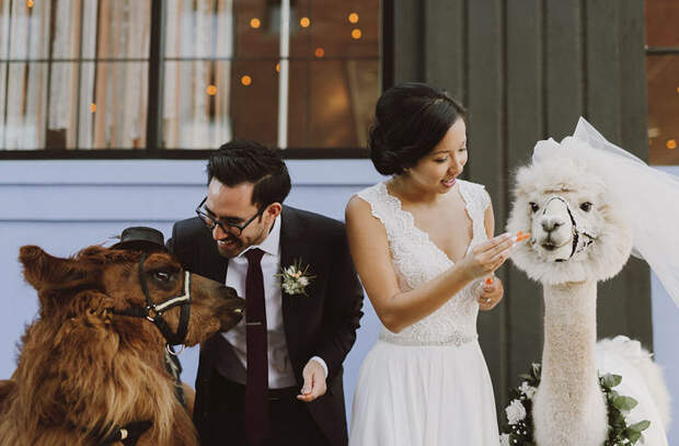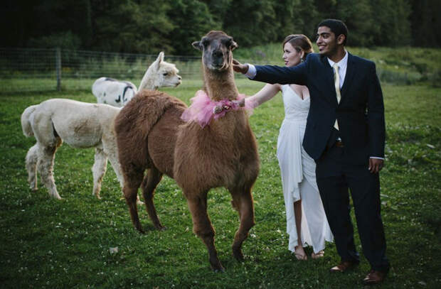 В американском терапевтическом центре штата Орегон, занимающемся лечением животных, собирать деньги на ветеринарные услуги помогают… ламы и альпаки. «Подрабатывают» они на свадьбах, позируя в костюмах жениха и невесты.