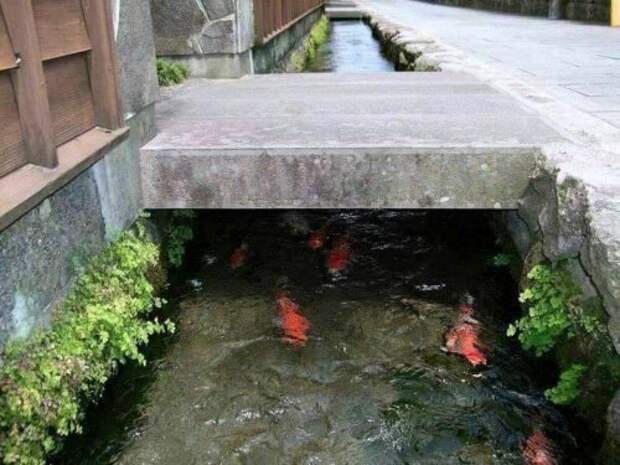 Очистные сооружения в Японии работают на высшем уровне, а в водостоках плавают красивые рыбки, чему не перестают поражаться туристы. Японцы бдительно следят за состоянием живности, ведь они являются индикатором окружающей чистоты.