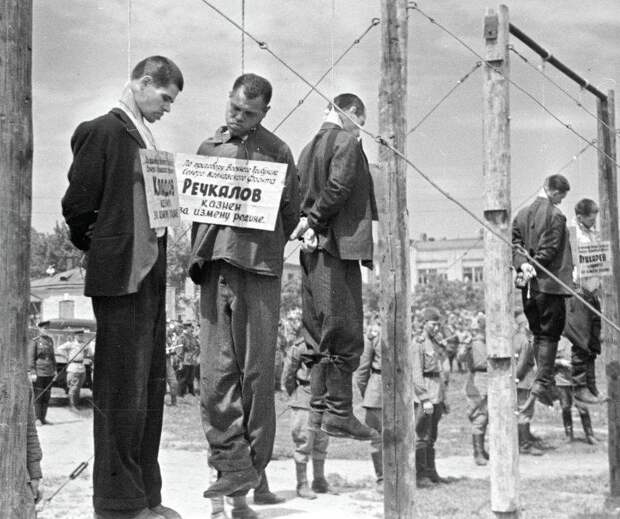 Казненные в Краснодаре советские коллаборационисты, служившие в айнзацкоманде 10а, выполнявшей карательные операции в отношении мирного населения на территории Краснодарского края в зоне действия 17-й армии вермахта. 1943 г.