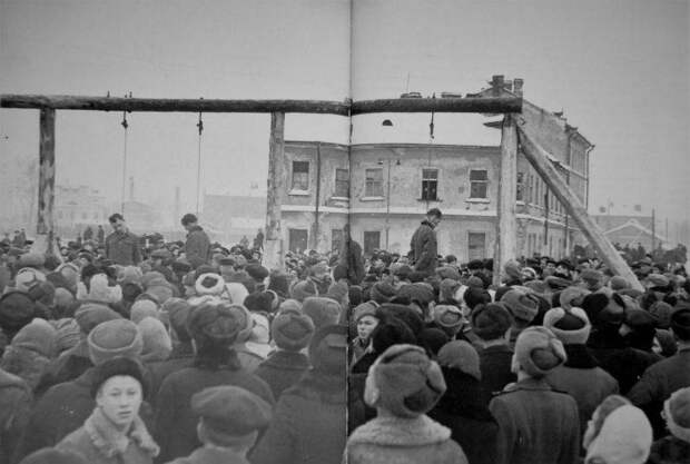 Публичная казнь немецких военных преступников на площади Калинина в Ленинграде. Январь 1946 г. Ленинградский судебный процесс – один из послевоенных советских открытых судов в отношении иностранных военнослужащих, обвиняемых в совершении военных преступлений в период Второй мировой войны. Перед судом предстали 11 немецких военнослужащих во главе с Генрихом Ремлингером. Их обвиняли в военных преступлениях, совершенных на территории Ленинградской области. Процесс проходил в конце декабря 1945 года – начале января 1946 года в Ленинграде в Выборгском доме культуры и широко освещался в советских СМИ. По итогам судебного разбирательства все подсудимые были признаны виновными и осуждены. Восемь подсудимых во главе с Ремлингером были публично повешены в Ленинграде, трое подсудимых получили каторжные работы