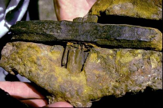 Во-первых, деревянная рукоятка, на которую насажен молот, снаружи уже окаменела, а внутри и вовсе превратилась в уголь. Значит, ее возраст тоже исчисляется миллионами лет. Во-вторых, специалистов Металлургического института в Колумбусе (Огайо) изумил химический состав самого молота: 96,6% железа, 2,6% хлора и 0,74% серы. Никаких других примесей выявить не удалось. Столь чистого железа не получали за всю историю земной металлургии.