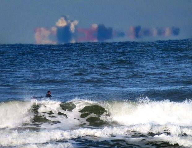 Как сообщают, мираж возник из-за аномально высокой температуры воздуха, которая установилась на острове, обычно несвойственной этому времени года.
