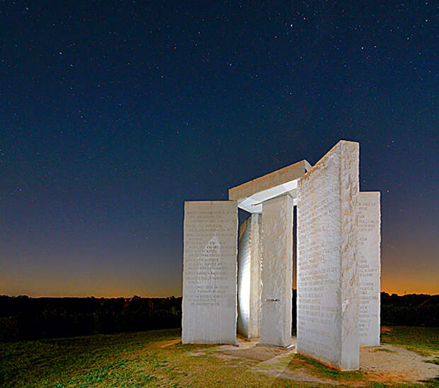 В 1979 году некто под псевдонимом R.C. Christian заказал строительной фирме изготовление и установку монумента — конструкции из шести гранитных монолитов общим весом более 100 тонн. На четырех боковых плитах выгравированы десять заповедей потомкам на восьми языках, включая русский. Последний пункт гласит: «Не будьте раком для Земли, природе тоже оставьте место!»
