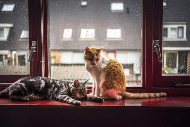 21-летняя Фелисити Берклифф (Felicity Berkleef) делает умилительную серию фотографий двух своих кошек, сидящих у окна в дождливую погоду. «Мои кошки любят гулять и исследовать мир, но, когда идет дождь, они предпочитают оставаться дома и смотреть из окна, — рассказывает Фелисити. — Пару месяцев назад я попробовала накрыть их пледом, чтобы снять очаровательное фото, и они не возражали. Тогда я решила фотографировать их у окна каждый раз, когда идет дождь».