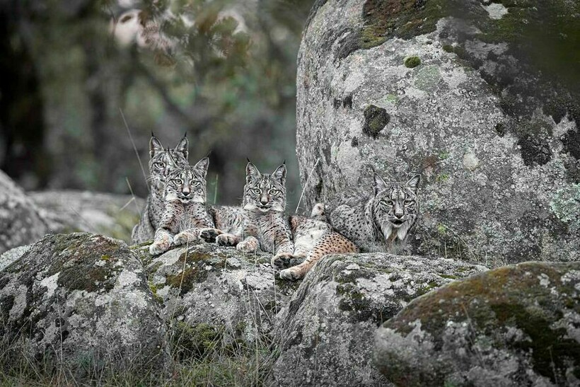 Категория «Портреты животных»: пиренейская рысь и ее три подросших детеныша