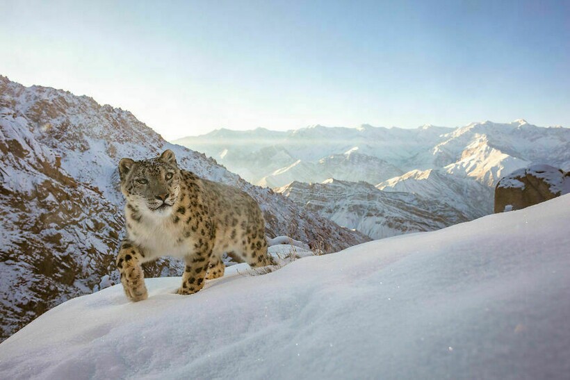 Gheorghe Popa Снежный барс крадется в Гималаях в индийском регионе Ладакх